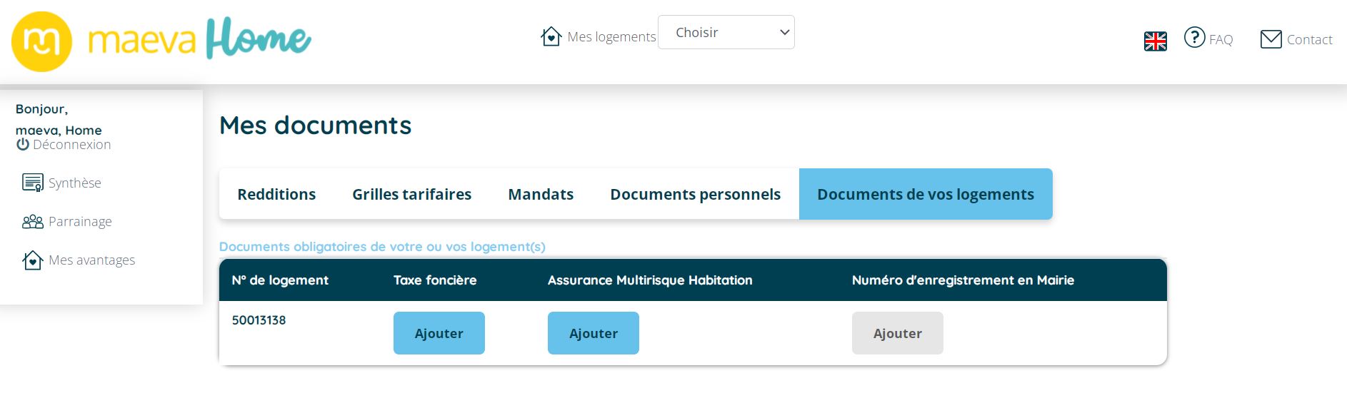 - Vous recevrez ensuite votre numéro d'enregistrement qu'il vous faudra inscrire sur votre espace propriétaire, dans la rubrique "Mes documents" en cliquant sur "Documents de vos logements" comme ci-après :